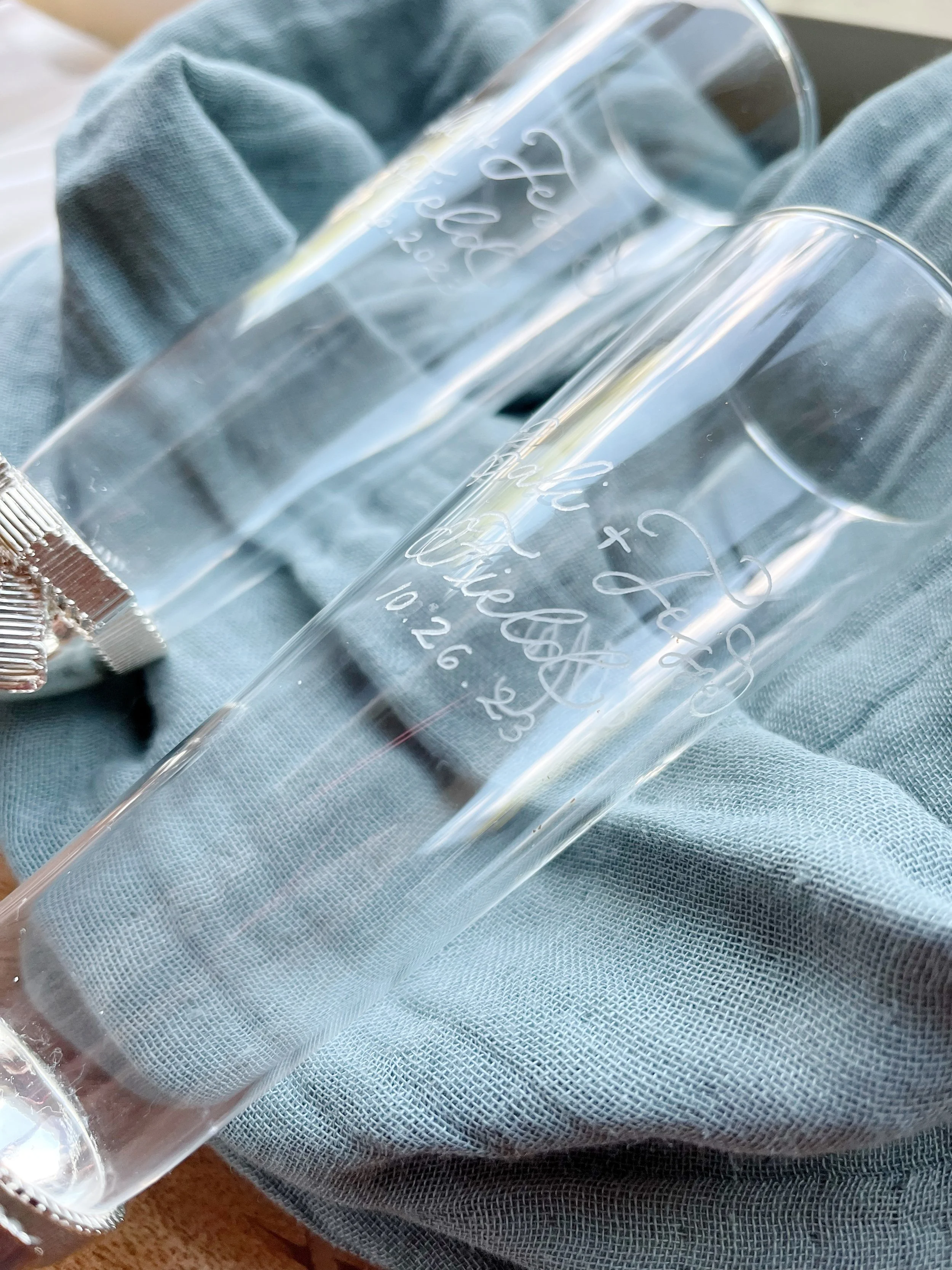 There's something inherently romantic about champagne. The pop of the cork, the cascade of bubbles, the clink of crystal glasses—these sounds signal celebration, romance, and milestone moments. But when those glasses bear the names of the people raising them, engraved in elegant calligraphy? That simple toast transforms into a memory they'll cherish for a lifetime.